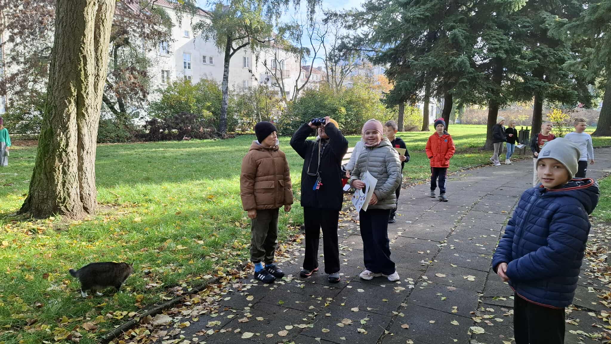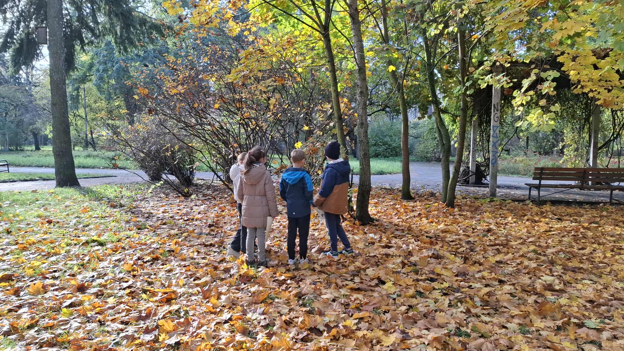 Uczniowie klasy 3a realizują projekt "Klasa w terenie". Dzieci wybrały się na wycieczkę do pobliskiego parku w poszukiwaniu jesieni. Obserwowały zmiany zachodzące w przyrodzie i niezwykle piękne jesienne barwy. Rozpoznawały drzewa i ich owoce, najpopularniejsze gatunki roślin i zwierząt żyjących w parku oraz wielozmysłowo badali przyrodę z wykorzystaniem aparatów fotograficznych, lup i lornetek. Zajęcia w terenie dostarczyły wiele radości.