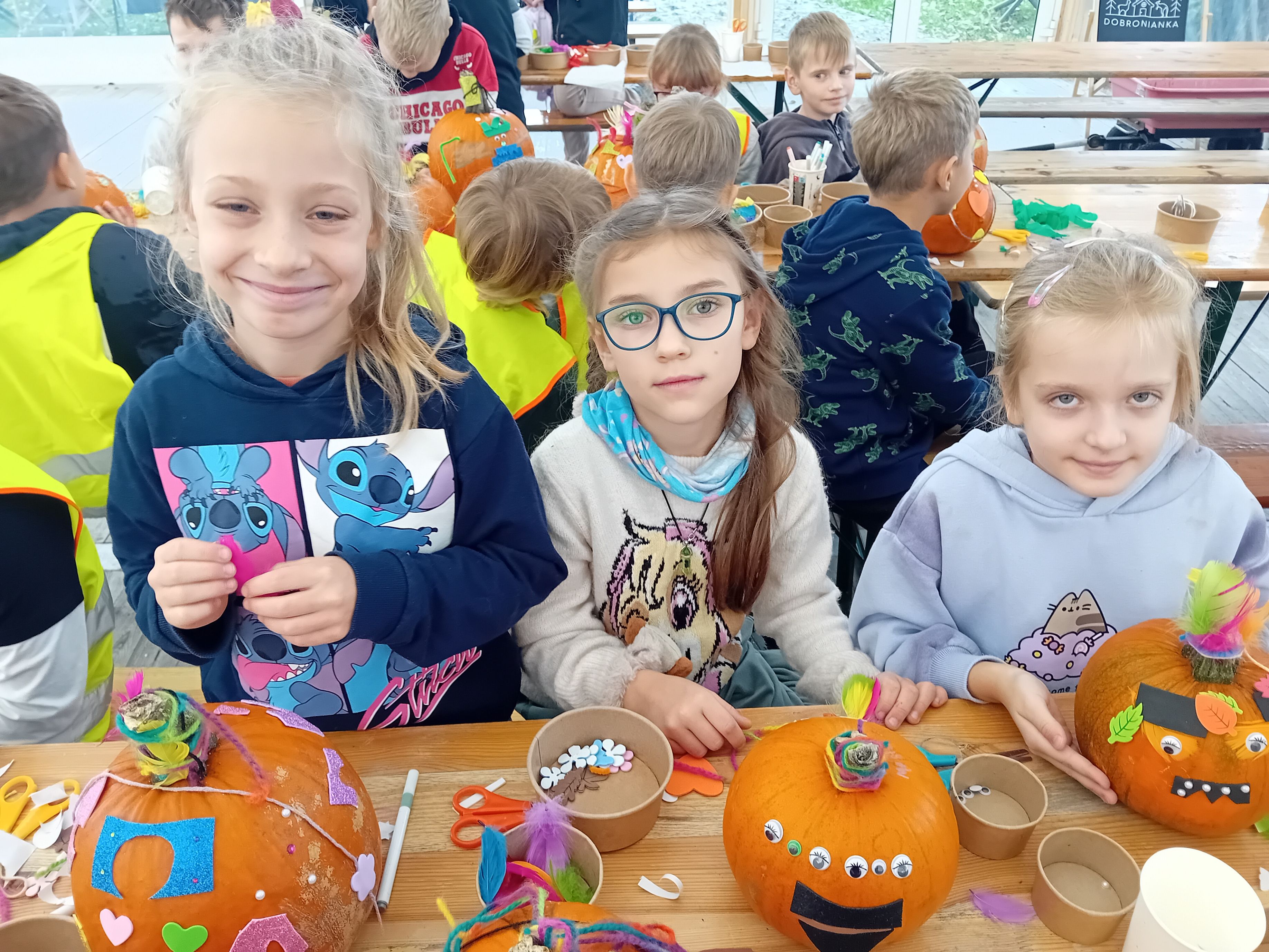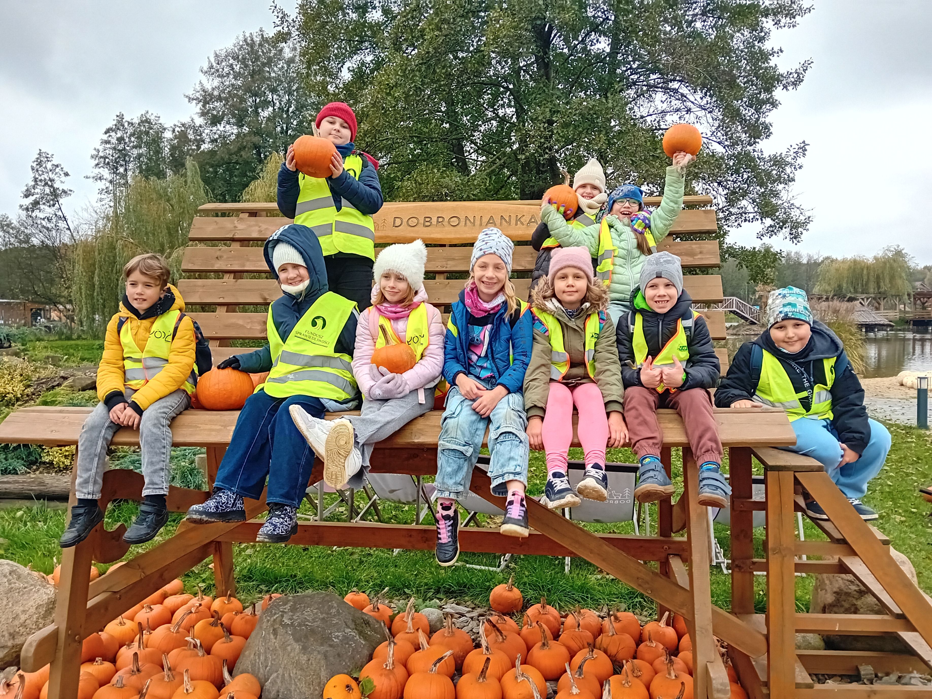 Klasy 2a i 2b wybrały się na wycieczkę do Dobronianki. Wraz z przewodnikiem zwiedziły mini ZOO oraz karmiły zwierzęta. A na koniec odbyły się warsztaty DYNIOWE SZALEŃSTWO. Dzieci otrzymały dynię, którą zdobiły w dowolny sposób wykorzystując dostępne materiały. Piękne ozdobione dynie zabrały ze sobą do domu.